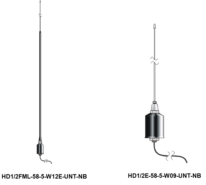 | HD1/2E-58-5-W09-UNT-NB | Heavy Duty 1/2w 151-156MHz with RG58 5m, W09, Unterminated, No Bracket | 3 |