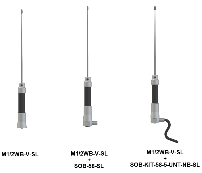 • Aerial onto a PL259 connector and a separate SOB base (order a SOB-58-SL with the aerial)